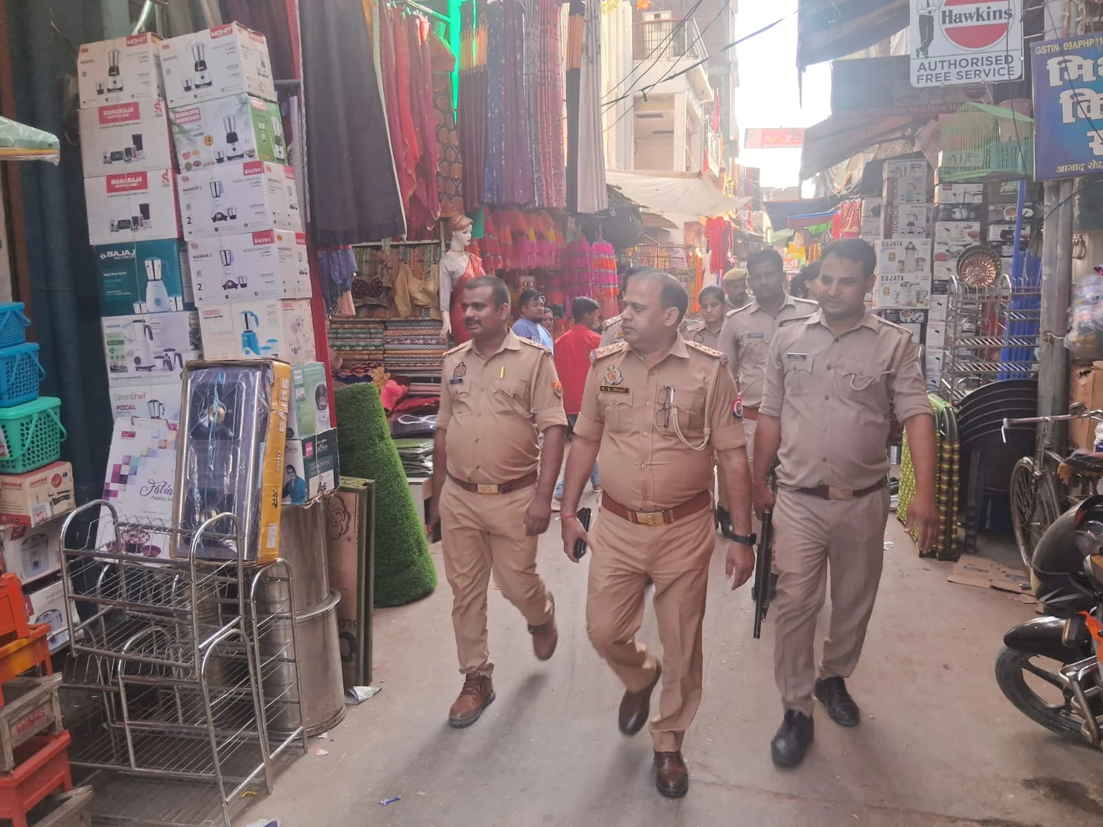 रूपईडीहा पुलिस ने किया फ्लैग मार्च : भीड़भाड़ वाले स्थानों पर पैदल गश्त कर लिया स्थिति का जायजा