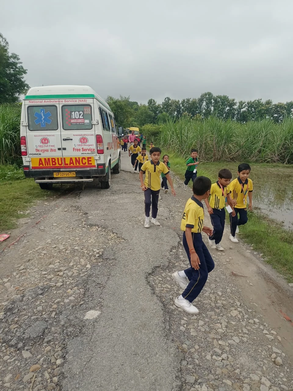 खराब सड़क पर फंसी स्कूल वैन व एंबुलेंस : वाहनों के फंसने से बच्चों में मची अफरातफरी