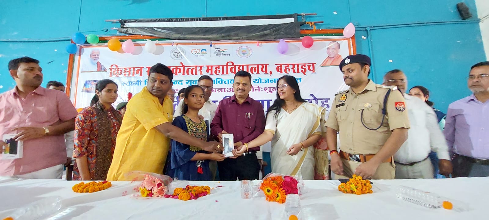 बहराइच। भारत को डिजिटल पथ पर तेज गति से आगे बढ़ाने, प्रत्येक देशवासी का जीवन आसान बनाने तथा डिजिटल इण्डिया की सुविधाओं से आच्छादित करने एवं प्रदेश के युवाओं के तकनीकी सशक्तिकरण के उद्देश्य से प्रदेश सरकार द्वारा स्नातक, स्नातकोत्तर, डिप्लोमा, कौशल विकास, पैरा मेडिकल तथा नर्सिंग आदि विभिन्न शिक्षण, प्रशिक्षण कार्यक्रमों के अन्तर्गत लाभार्थी युवा वर्ग को स्मार्टफोन निःशुल्क प्रदान करने का निर्णय लिया गया है। प्रदेश सरकार की इस अतिमहत्वाकांक्षी योजना से लक्षित युवा लाभार्थी वर्ग जहॉ एक ओर अपने शैक्षिक पाठ्यक्रमों को सफलतापूर्वक पूर्ण कर सकेंगे वहीं दूसरी ओर शैक्षिक पाठ्यक्रमों को पूर्ण करने के उपरान्त विभिन्न शासकीय, गैर शासकीय तथा स्वावलम्बन की योजनाओं में भी इस गैजेट का सदुपयोग कर सेवारत, व्यवसायरत हो सकेंगे। केडीसी में आयोजित निःशुल्क स्मार्ट फोन वितरण समारोह को सम्बोधित करते हुए एमएलसी डॉ प्रज्ञा त्रिपाठी, जिलाधिकारी डॉ. दिनेश चन्द्र, पुलिस अधीक्षक प्रशान्त वर्मा, प्राचार्य डॉ विनय सक्सेना, पूर्व प्राचार्य मेजर डॉ एस.पी. सिंह, वाइस प्राचार्य डॉ उस्मान, सहित अन्य वक्ताओं ने कहा कि. प्रधानमंत्री नरेन्द्र मोदी व प्रदेश के मुख्यमंत्री योगी आदित्यनाथ के नेतृत्व में केन्द्र व प्रदेश सरकार शिक्षा के विकास के लिए दृढ़ संकल्पित है। वक्ताओं ने छात्र-छात्राओं का आहवान किया कि स्मार्ट फोन का सदुपयोग शिक्षा ग्रहण करने में करें। विद्यार्थियों के लिए ऐसे गैजेट्स प्रतियोगी परीक्षाओं के लिए भी अत्यन्त उपयोगी हैं। वक्ताओं ने स्मार्ट फोन प्राप्त करने वाले विद्यार्थियों को बधाई देते हुए शिक्षक-शिक्षिकाओं का आहवान किया कि छात्र-छात्राओं गुणवत्तापूर्ण शिक्षा के साथ अच्छे संस्कार भी दें। समारोह के दौरान एमएलसी डॉ प्रज्ञा त्रिपाठी, जिलाधिकारी डॉ. दिनेश चन्द्र, पुलिस अधीक्षक प्रशान्त वर्मा, प्राचार्य डॉ विनय सक्सेना, पूर्व प्राचार्य मेजर डॉ एस.पी. सिंह, वाइस प्राचार्य डॉ उस्मान, सहायक प्रो. डॉ डिम्पल जैन, डॉ राजीव निगम ने अन्य अतिथियों के साथ महाविद्यालय के 2573 विद्यार्थियों को स्मार्ट फोन तथा 78 विद्यार्थियों को टेबलेट का वितरण किया। इस अवसर पर गणमान्य व संभ्रान्तजन, शिक्षक-शिक्षिकाएं तथा बड़ी संख्या में छात्र-छात्राएं मौजूद रहीं।