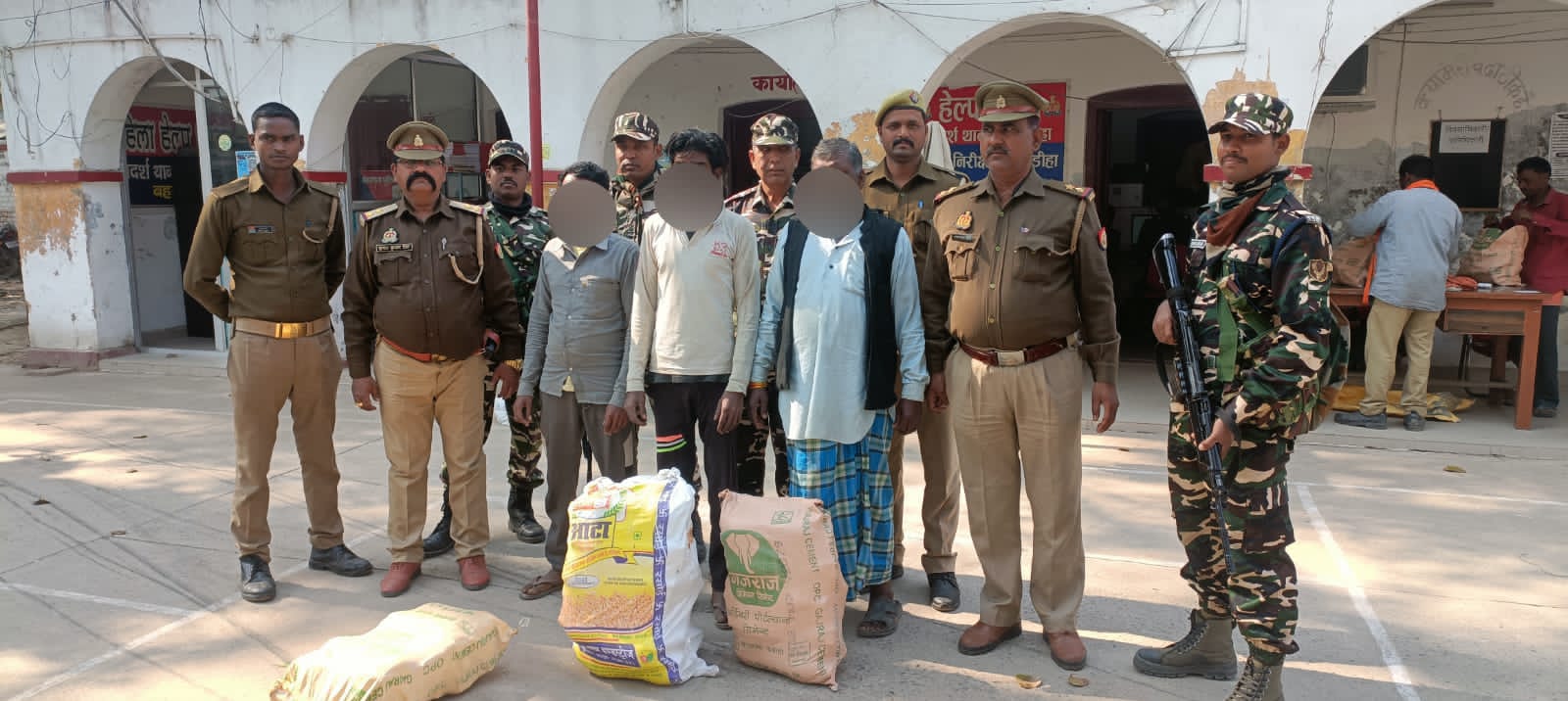 बहराइच। थाना रूपईडीहा पुलिस व एसएसबी के संयुक्त कार्रवाई में 100 लीटर अपमिश्रित कच्ची शराब के साथ तीन अभियुक्तों को गिरफ्तार किया गया। मौके से 1 किलो 500 ग्राम यूरिया, 750 ग्राम नौशादर, बरामद किया गया। अपर पुलिस अधीक्षक ग्रामीण अशोक कुमार व क्षेत्राधिकारी राहुल पाण्डेय के निर्देशन में प्रभारी निरीक्षक रूपईडीहा श्रीधर पाठक के नेतृत्व में बुधवार को उप निरीक्षक अश्वनी पाण्डेय मय पुलिस बल व एसएसबी के सयुक्त टीम द्वारा भारत नेपाल सीमा स्तम्भ संख्या 656/1 के पास से 100 लीटर अपमिश्रित देशी कच्ची शराब, एक किलो 500 ग्राम यूरिया व 750 ग्राम नौसादर के साथ 03 अभियुक्तगण दिनेश गौतम पुत्र मोल्हे गौतम, विद्याराम पुत्र पल्ली व लखन पासी पुत्र जगन्नाथ पासी निवासीगण अंटहवा थाना रुपईडीहा को गिरफ्तार किया गया। जिसके सम्बन्ध में स्थानीय थाना पर मुकदमा अपराध संख्या 0040/2023 धारा 60 उत्तर प्रदेश शुल्क आबकारी अधिनियम व 272 भादवि पंजीकृत कर अभियुक्तगणों को न्यायालय रवाना किया गया। गिरफ्तारी टीम में उ.नि. अश्वनी पाण्डेय, उ.नि.कृष्ण कुमार सिंह, हे.का.विजय शंकर सिंह, हे.का. अशोक प्रजापति, हे.का. राकेश कुमार, एसएसबी उ.नि.रामकिशिन, एएसआई परमेश्वर गोगई,एचसी एन भारु मित्थू, एचसी संवरता वरमन, एचसी अरुन कुमार, का. शनि चैधरी, का. मुमताज आलम, का. रविन्द्र सिंह, का. दिनेश कुमार शामिल रहे।