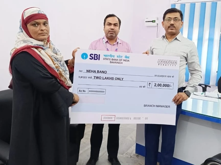 क्षेत्रीय प्रबन्धक ने सौंपा चेक : स्टेट बैंक के खातेदार की मृत्यु पर पत्नी को मिला बीमा योजना का लाभ