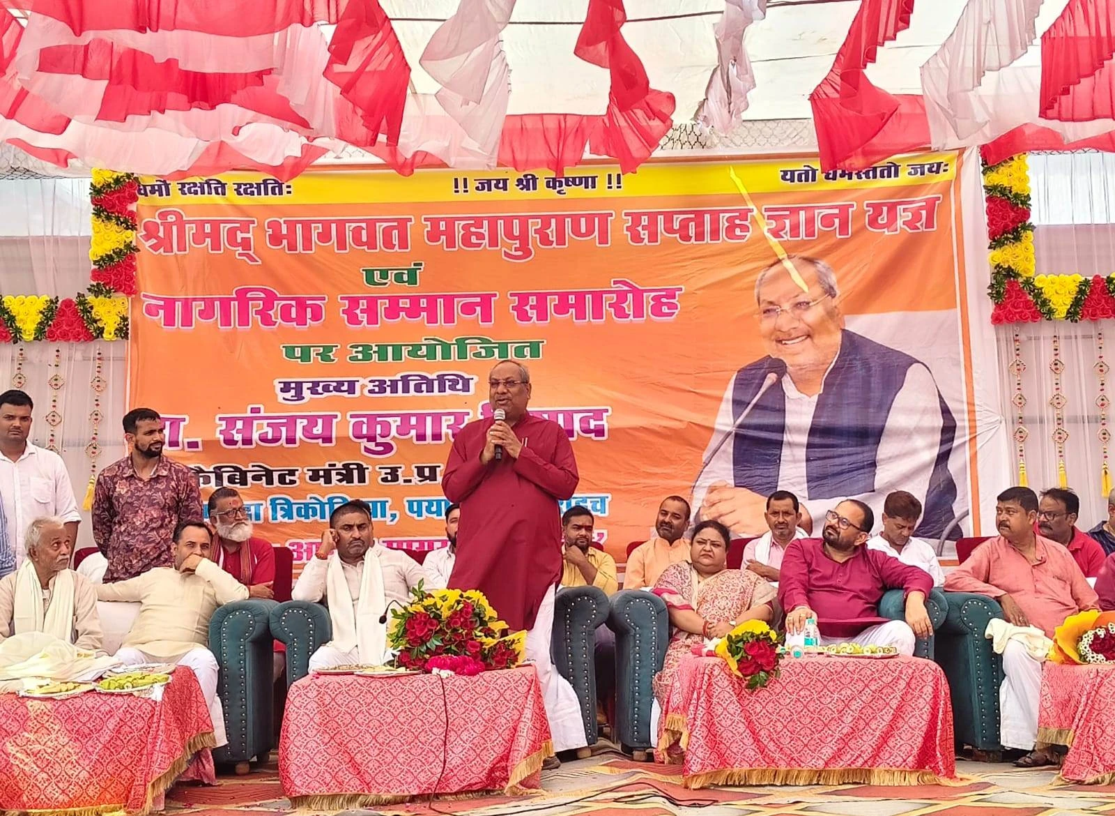 भागवत महापुराण कथा ज्ञान यज्ञ समारोह में शामिल हुए मत्स्य मंत्री : वृद्धजन को प्रमाण-पत्र प्रदान कर किया सम्मानित
