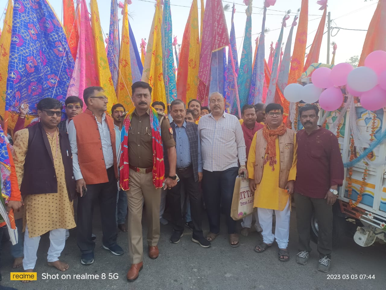 रुपईडीहा, बहराइच। हारे का सहारा श्री श्याम हमारा गीत के साथ धूमधाम के साथ परंपरागत मार्ग से भव्य श्री श्याम निशान शोभा यात्रा निकाली गई। हजारों पुरुष महिलाएं अबीर गुलाल उड़ा कर खुशियां मनाई। खाटू श्याम गीतो के साथ श्रद्धालु पूरे भक्ति भाव में डूबे रहे। शुक्रवार सुबह 6 बजे श्री श्याम निशान पद यात्रा स्थानीय धर्मशाला से निकल कर नानपारा की ओर रवाना हुई। इस निशान यात्रा में महिलाएं, युवा, बच्चे, बुजुर्ग हाथों में निशान उठाये हुये थे। कस्बे से शुरू हुई इस यात्रा के स्वागत के लिए जगह जगह स्टाल लगे हुए थे। जहां श्याम भक्तों के लिए जलपान की व्यवस्था की गई थी। इस यात्रा की सुरक्षा व्यवस्था की जिम्मेदारी थाना प्रभारी रुपईडीहा श्रीधर पाठक स्वयं पद यात्रा करते हुऐ कर रहे थे। उप निरीक्षक रुदल बहादुर सिंह, उप निरीक्षक प्रेमचंद यादव, उप निरीक्षक अश्विनी कुमार, हेड कांस्टेबल राजेन्द्र मोदनवाल, अशोक तिवारी सहित अन्य पुलिसकर्मी इस पद यात्रा की सुरक्षा व्यवस्था की देख रेख में शामिल रहे। श्याम परिवार रुपईडीहा के भक्त बलराम मिश्रा ने बताया कि रुपईडीहा से नानपारा शयाम धाम की दूरी लगभग 20 किमी से भी अधिक है। लेकिन श्याम भक्त बड़ी उत्साह और उल्लास के साथ इस पद यात्रा में नाचते गाते चलते रहे। इस निशान पैदल यात्रा में शामिल होने के लिए छोटे छोटे बच्चे महिलाएं, युवा अपने हाथों में निशान उठाये नाचते गाते जुलूस की शोभा बढ़ाते दिखे। बताते चलें अयोध्या से चलकर गौतम गुप्ता उम्र 13 वर्ष ने एवं इसी उम्र के दर्जनों बच्चे निशान लेकर पैदल नानपारा तक गए। आयोजक विजय मित्तल और कल्लू भैया, उद्योग व्यापार संघ अध्यक्ष एवं अनिल अग्रवाल ने बताया कि इस वर्ष लगभग 330 निशान नानपारा श्याम मंदिर में बाबा को अर्पित किये जायेंगे। सुनहरे अवसर पर पूरनमल अग्रवाल, रतन अग्रवाल, निर्मला देवी, पंचायत सदस्य कमल कुमार गुप्ता, शुभम गुप्ता, राजीव अग्रवाल, विष्णु गुप्ता, रुद्र कसौधन, श्रीमती अनमोल गुप्ता, योगेंद्र शर्मा, डॉ उमाशंकर वैश्य, कमल मद्धेशिया, केसरी प्रसाद सोनी उर्फ गज्जू राजकुमार गुप्ता, सुरेश गुप्ता, कमल कुमार गुप्ता, प्रियंका गुप्ता, माही गुप्ता, निर्मला गुप्ता, विद्या मिश्रा, बलराम मिश्रा, रज्जू गुप्ता, प्रमोद गुप्ता, आराध्या गुप्ता, पंखुड़ी गुप्ता, पूनम गुप्ता, मनीष गुप्ता, प्रदीप अग्रवाल, नीटू अग्रवाल, विकास अग्रवाल, प्रेम बंसल, अंजनी मित्तल, अरविंद शुक्ला, दुर्गेश बरनवाल, विनय शर्मा, संजय अग्रवाल, रामचंद्र अग्रवाल, श्री चंद गुप्ता, पप्पू गुप्ता, सिद्धनाथ गुप्ता, संजय वर्मा, शेर सिंह कसौधन, संजय सोनी, दीपक आर्य, राहुल शुक्ला, दिनेश गुप्ता, शिवम गुप्ता, सोनू गुप्ता, पंडित राजकन पान्डेय, अनूप अग्रवाल, घनश्याम गुप्ता आ